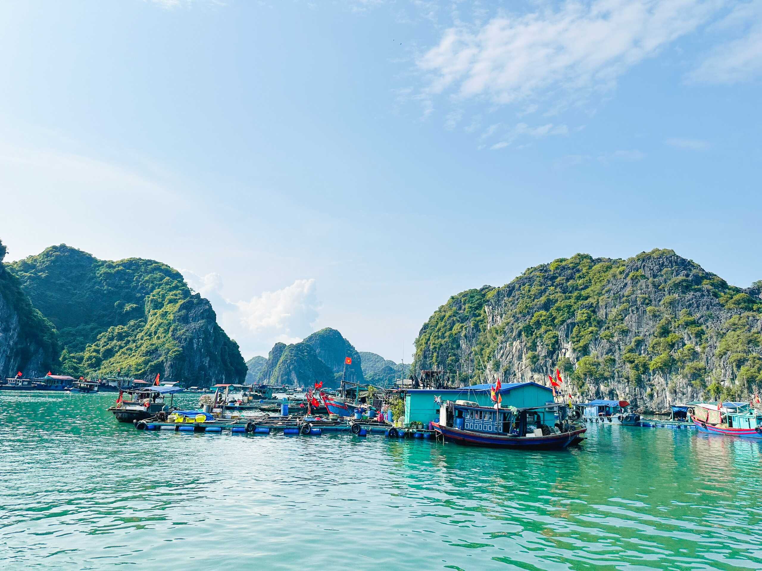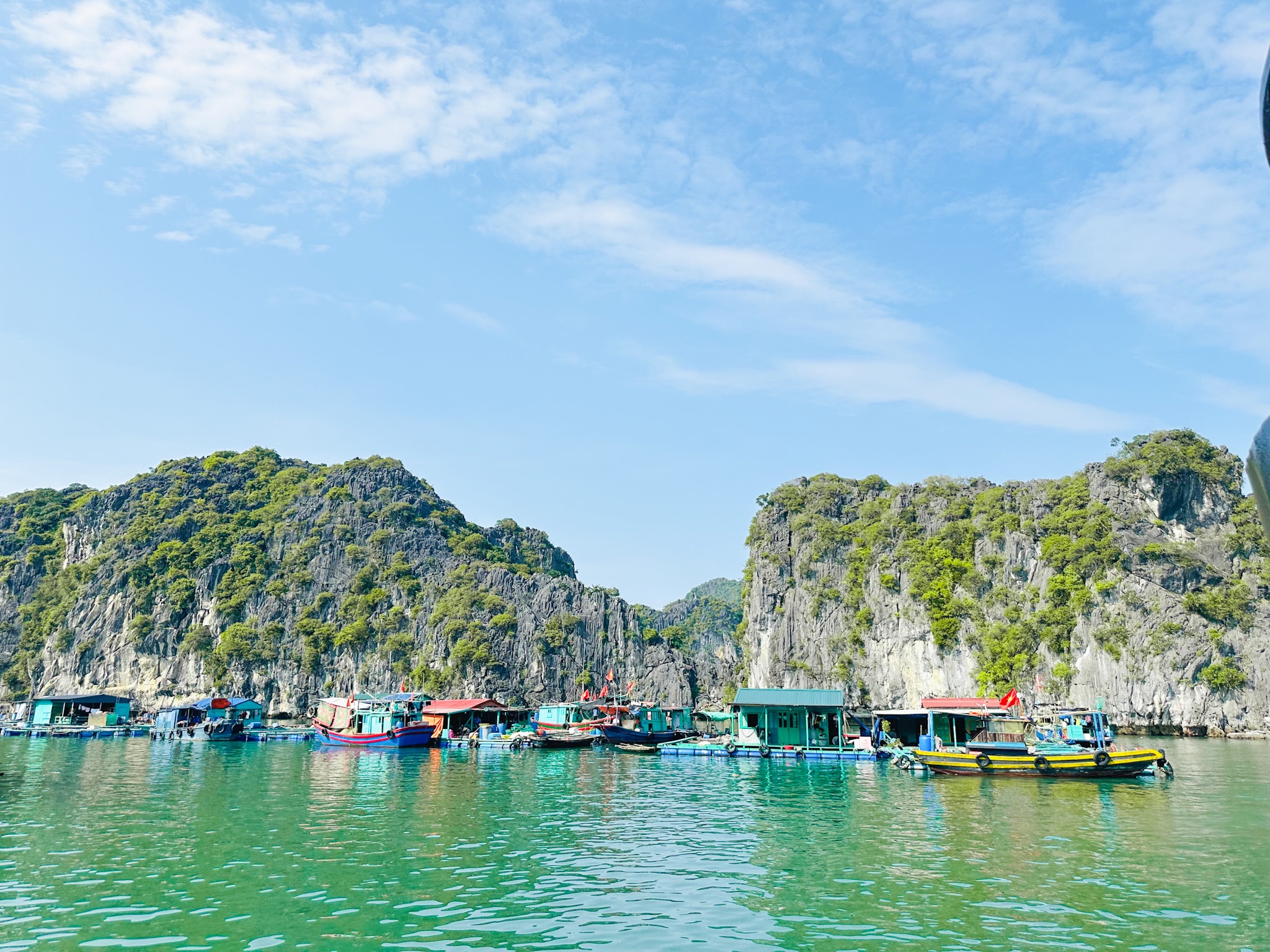 The cruise takes you through the ancient Cai Beo Fishing Village, where residents live in floating houses clustered together like a city on water.