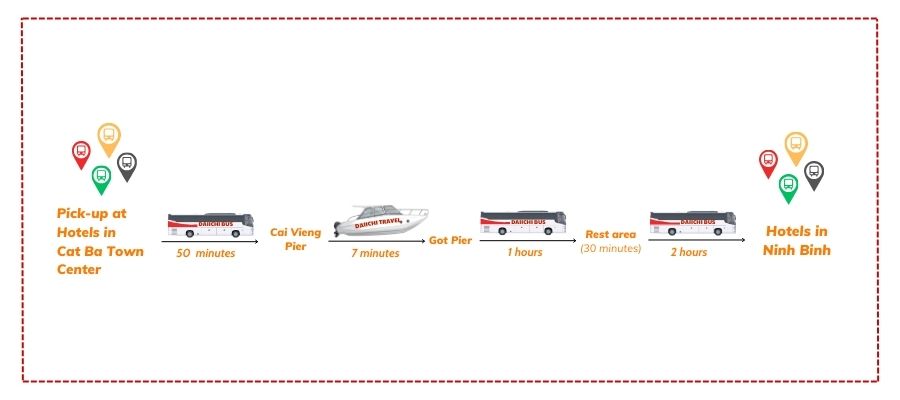 After successfully booking the Cat Ba to Ninh Binh bus ticket, you will receive a confirmation via email or phone. Daiichi Travel staff will promptly contact you to confirm the information once again and arrange the pickup time.