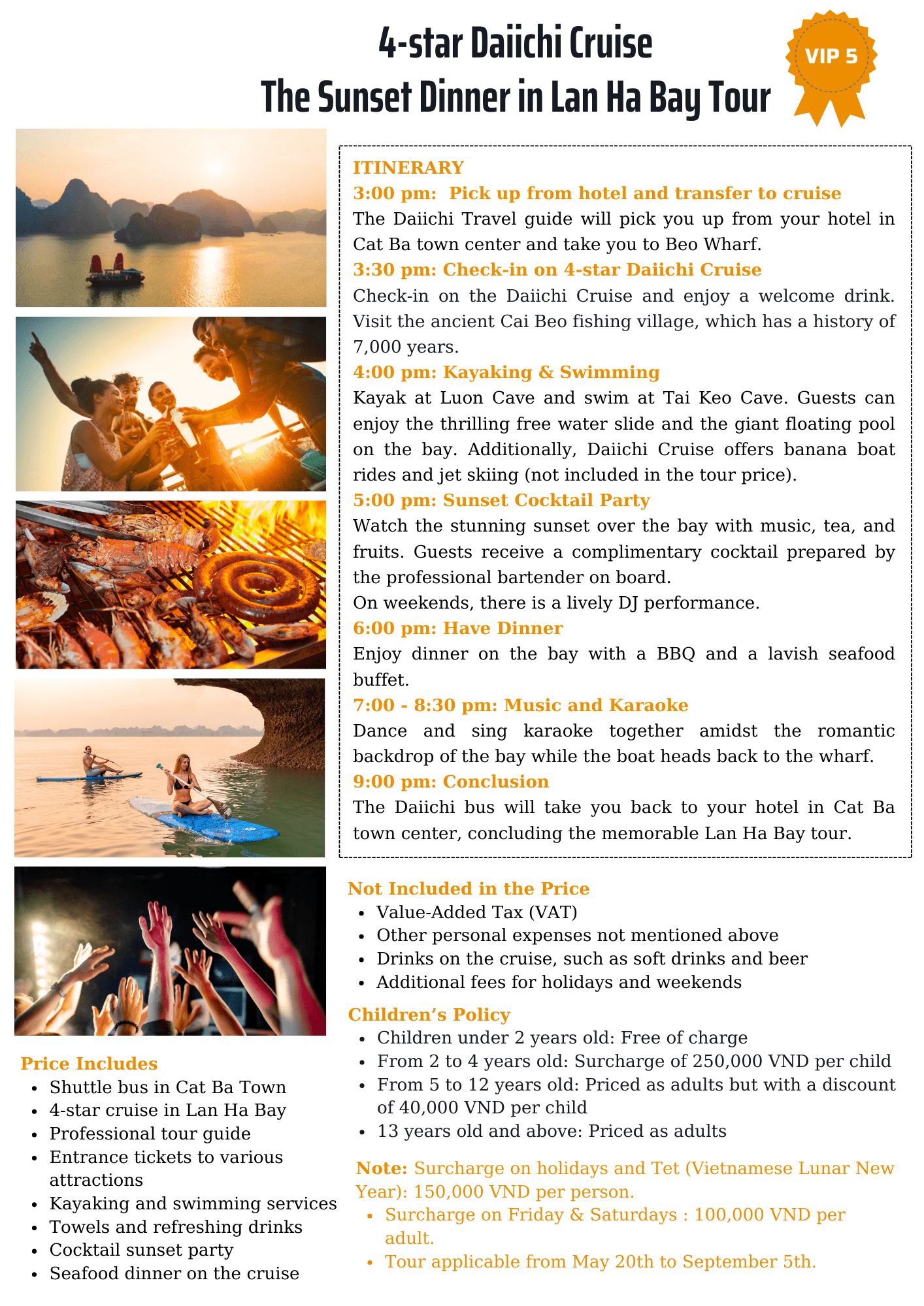✔ Half-day sunset tour on a VIP 3-star cruise