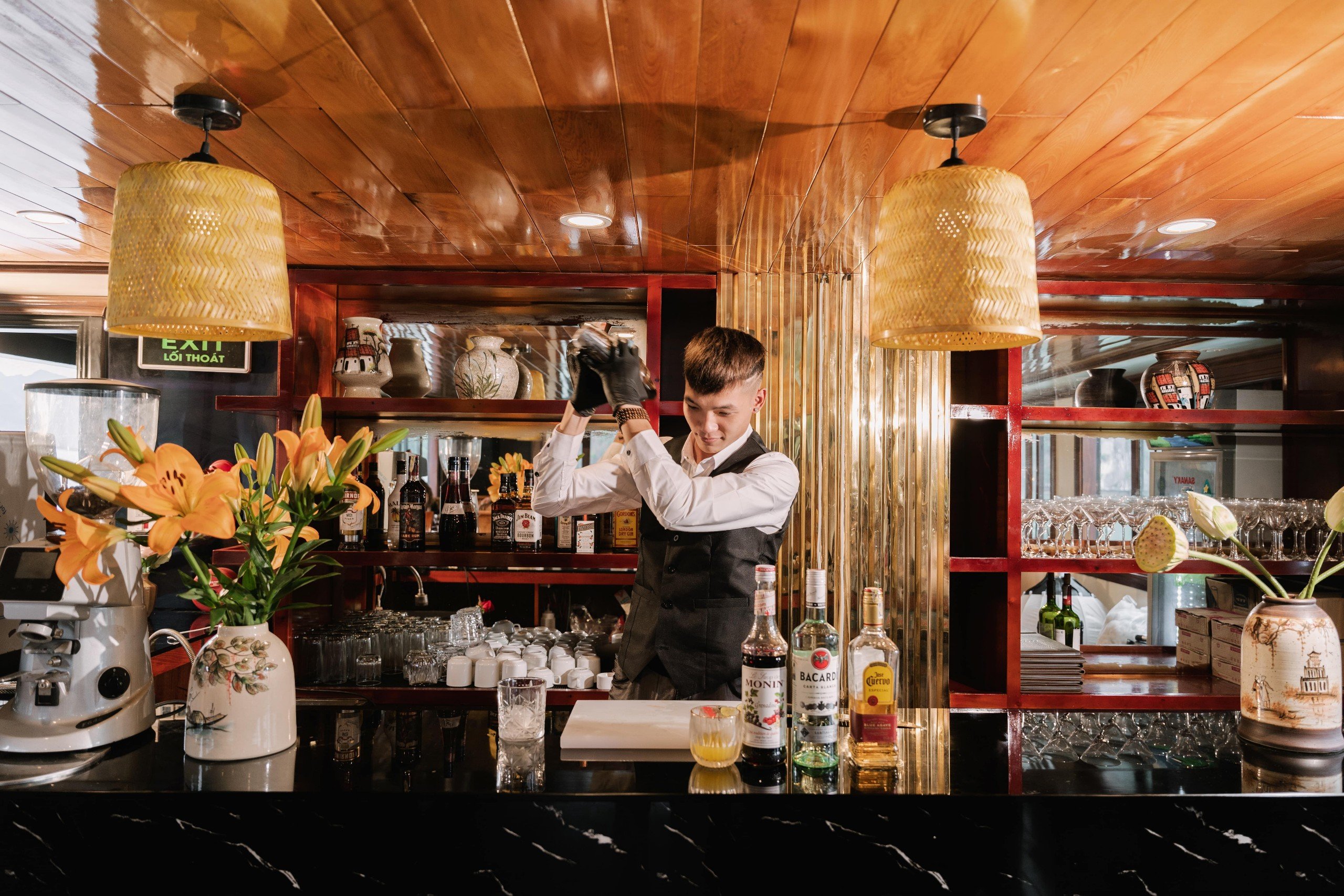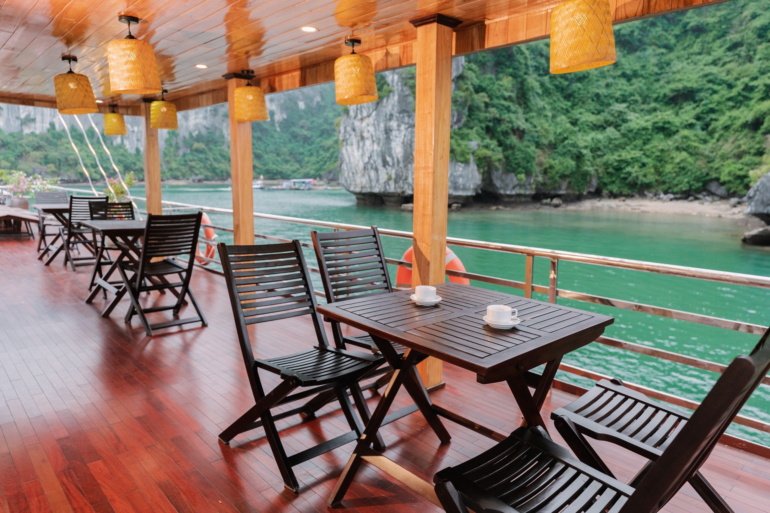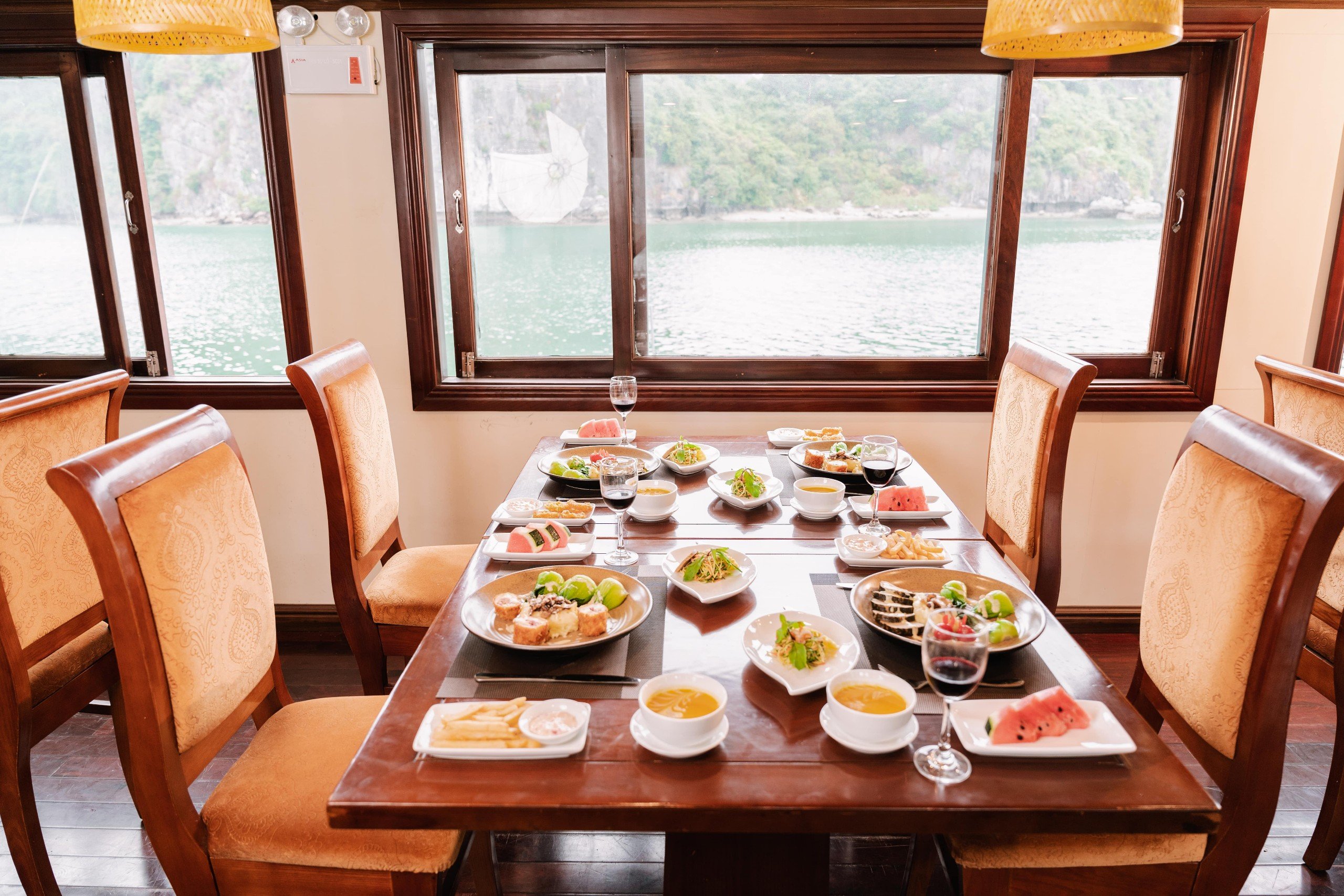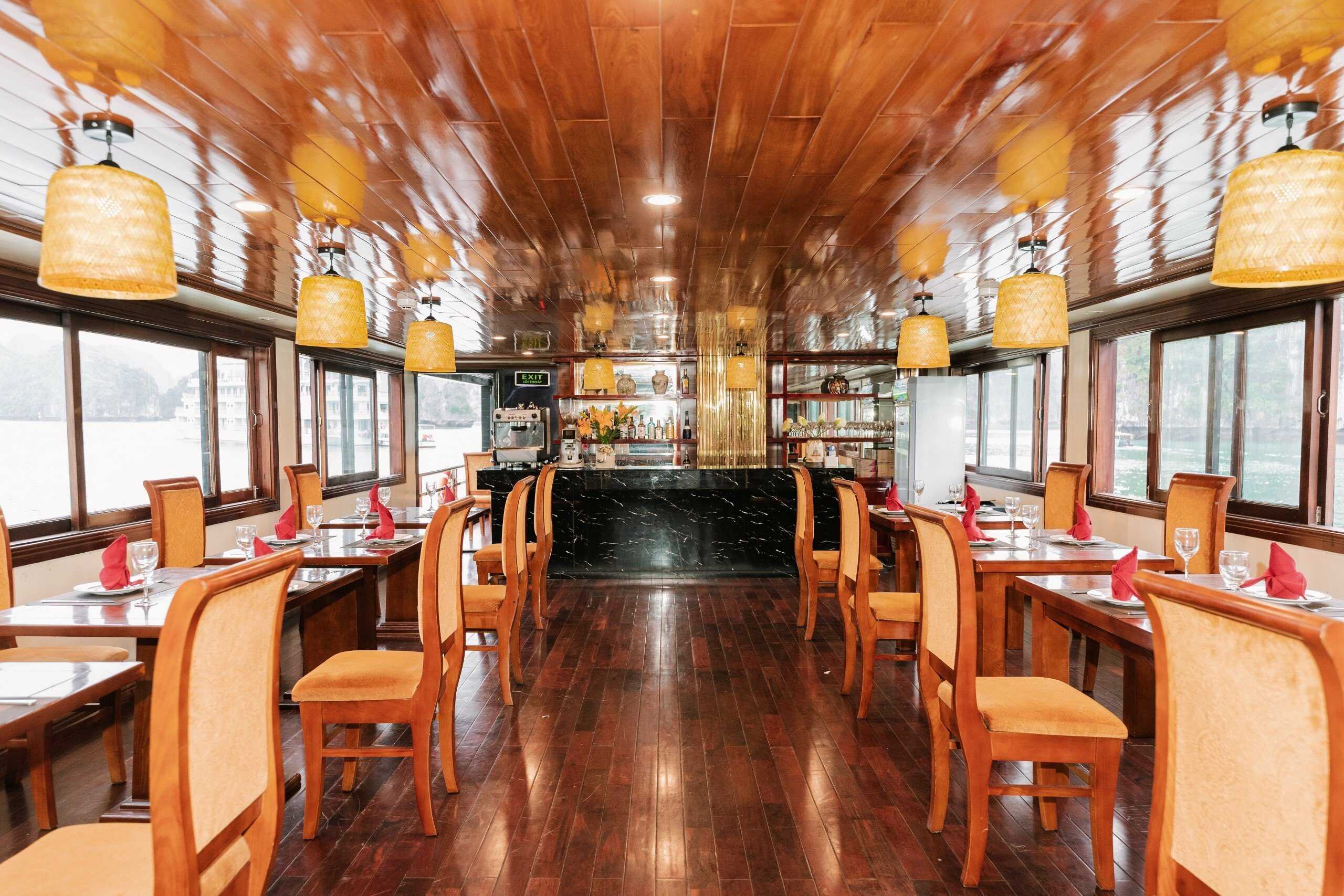 - Restaurant: Located on the second floor, designed in a luxurious and elegant Indochine style with a capacity of up to 35 guests, Daiichi Boutique Cruise offers an unforgettable dining experience. The bar in the restaurant serves a variety of beverages including tea, coffee, cocktails, and wine.