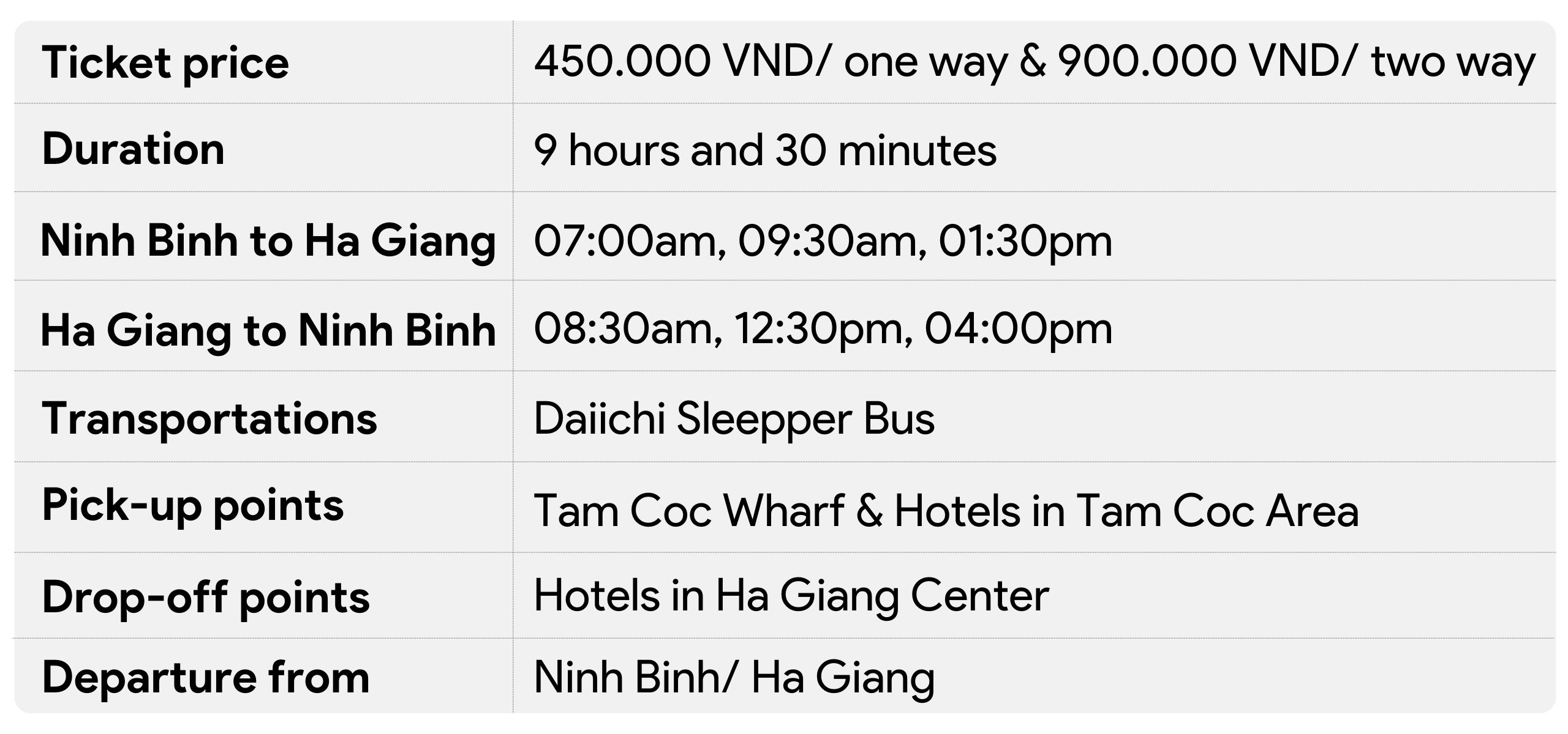 Information for Bus Ha Giang to Ninh Binh