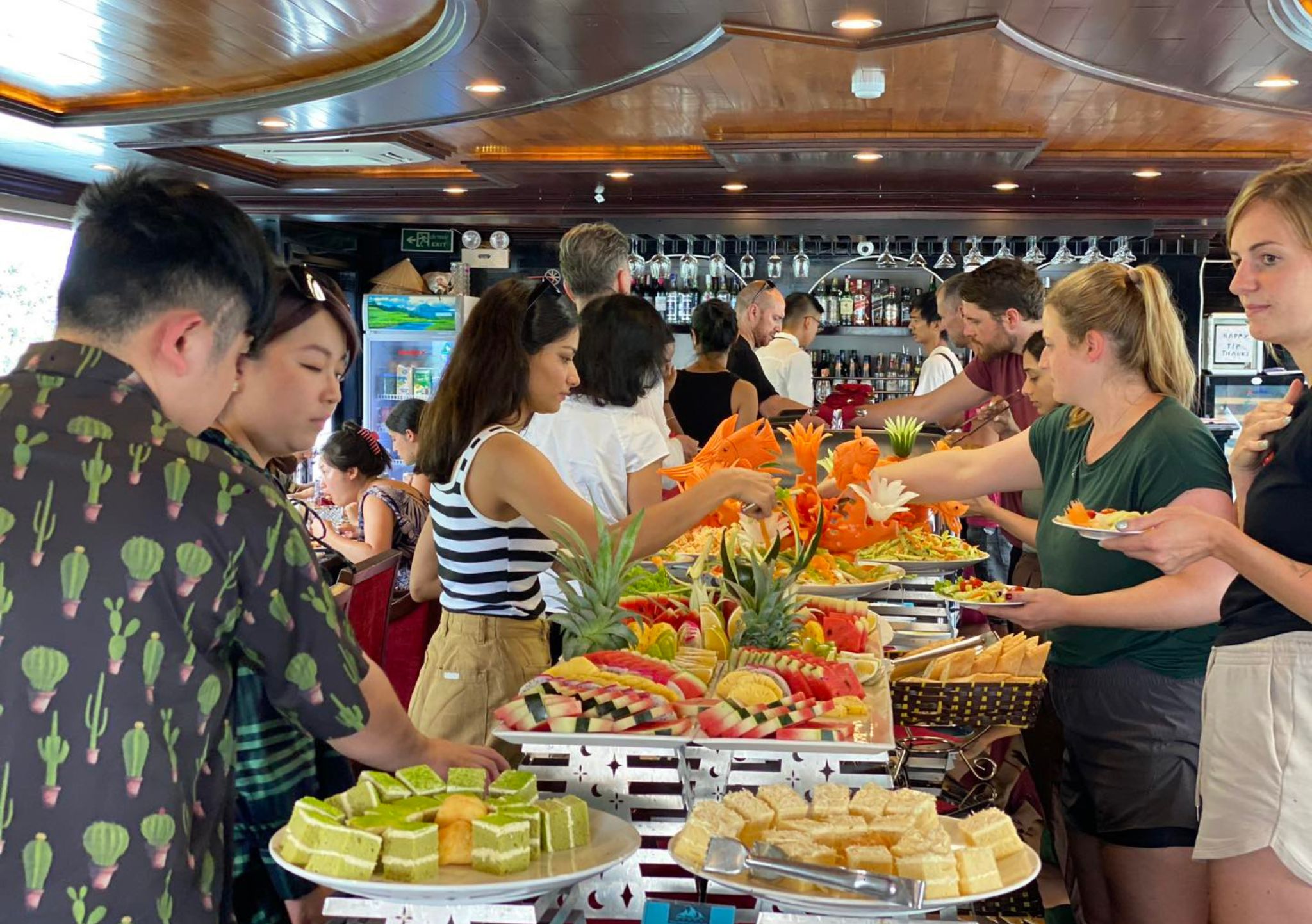 10:00 am: Brunch: Enjoy a well-prepared brunch as the cruise navigates through emerald waters and picturesque karst mountains towards the harbor.