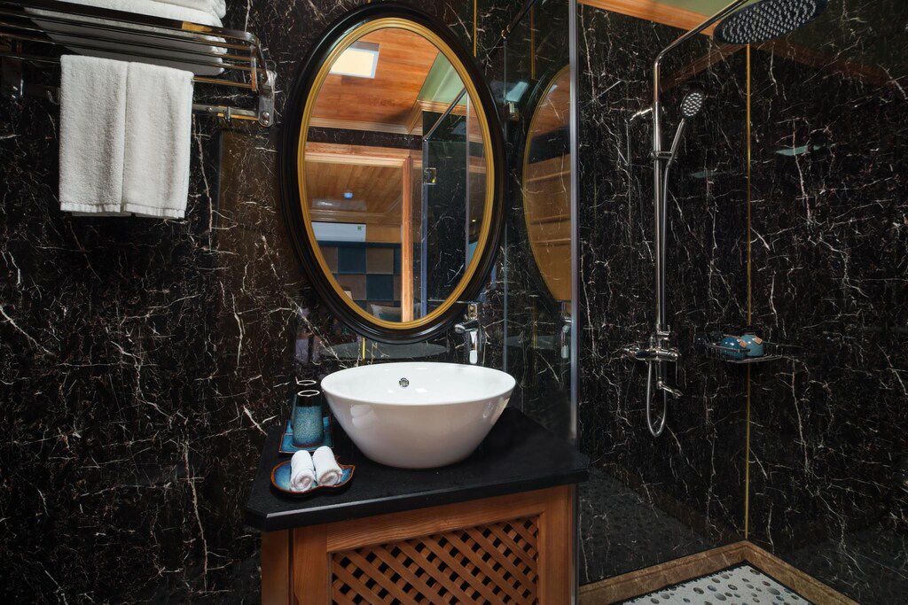 The bathrooms in each room are elegantly designed and fully equipped with amenities for your comfort.