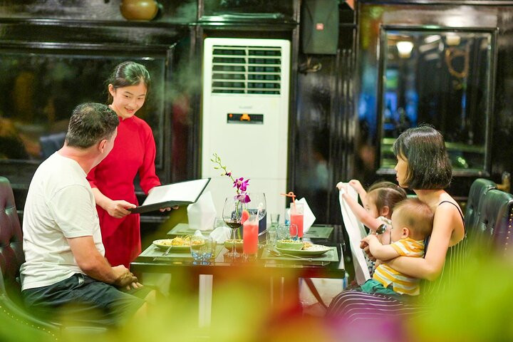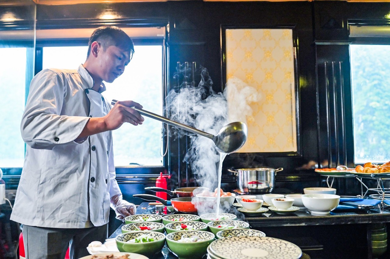The restaurant is designed to accommodate up to 30 guests, offering them the most exquisite dining experiences on Ha Long Bay.