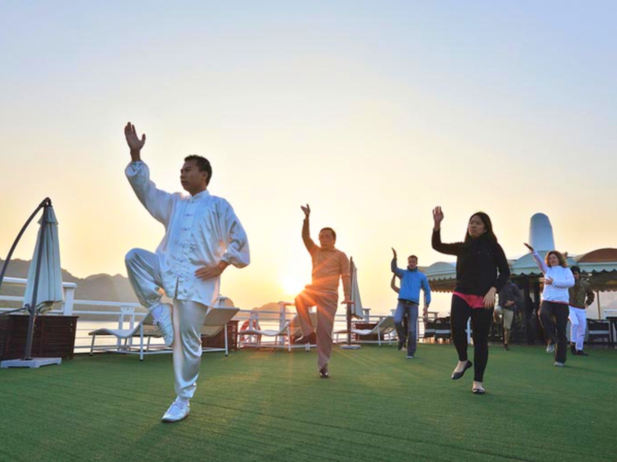 06:00 Be an early riser and attend the healthy Tai Chi practice on the sundeck. Sunrise photography is awesome.