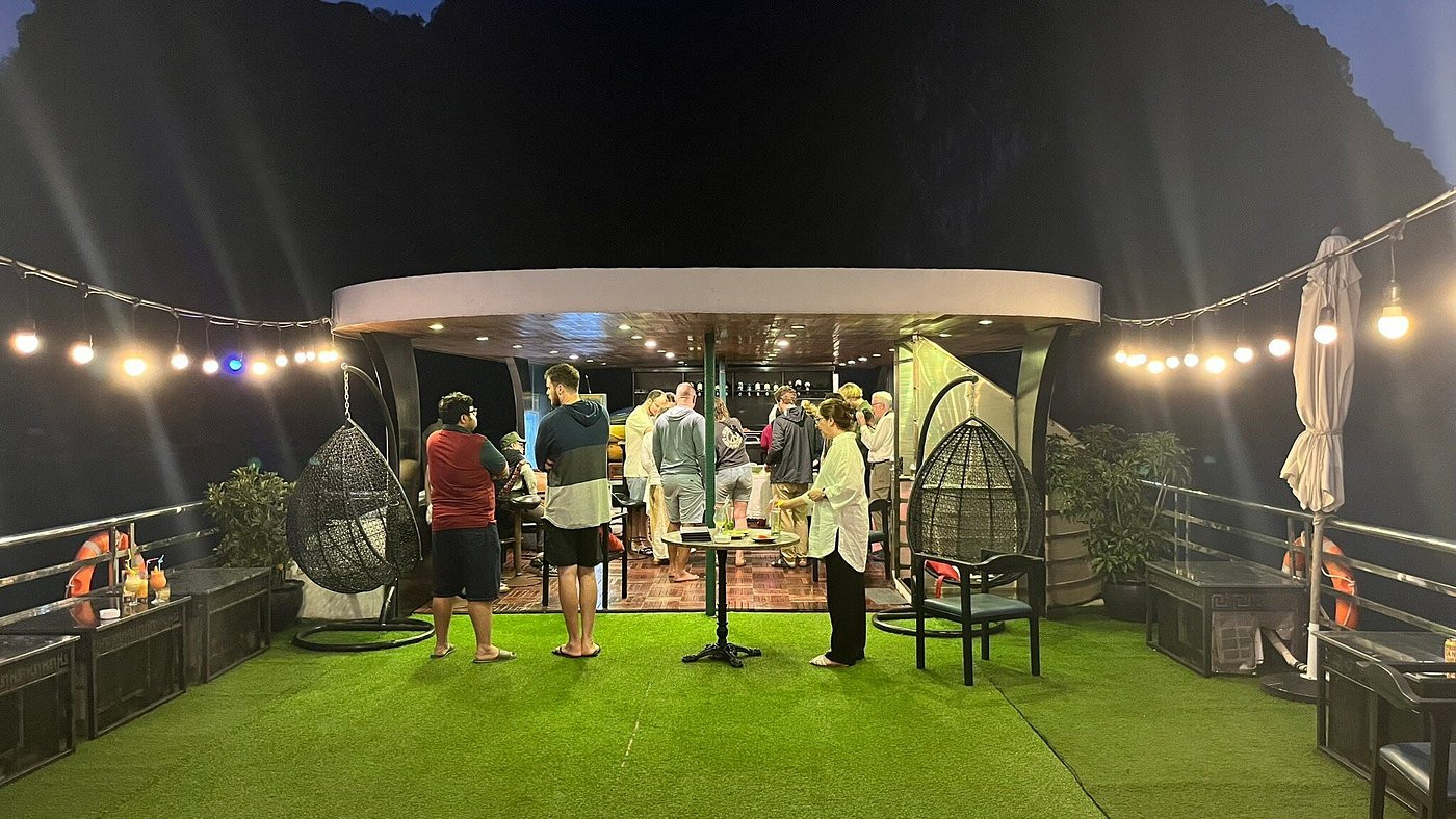 The third floor features a sundeck where guests can sunbathe and relax, enjoying the beautiful scenery of Ha Long Bay.
