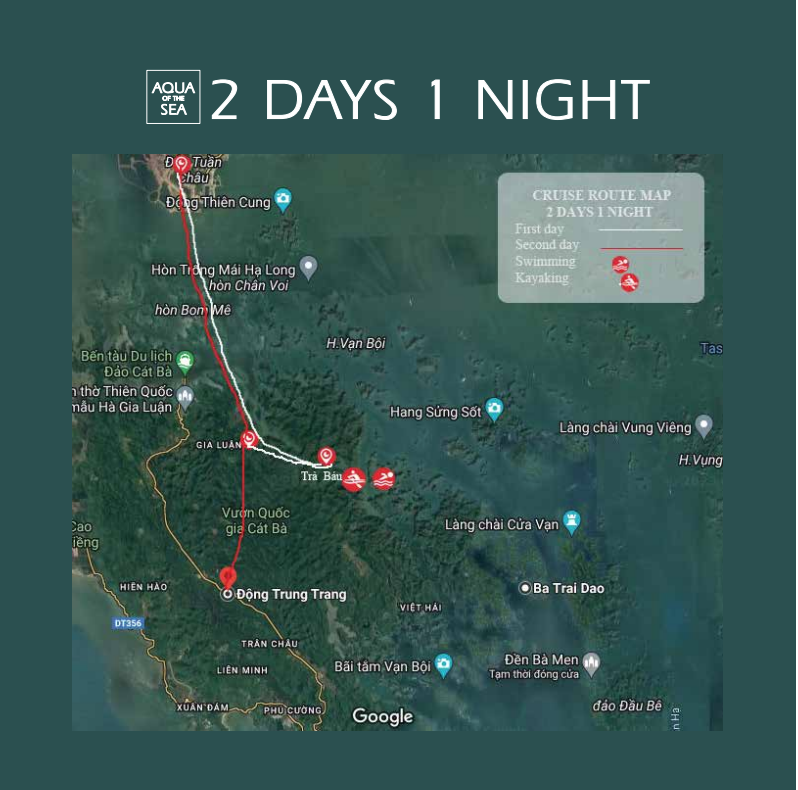 15:00: Aqua Of The Sea Cruise moves to Tra Bau island in Lan Ha Bay. Do kayaking and swimming
