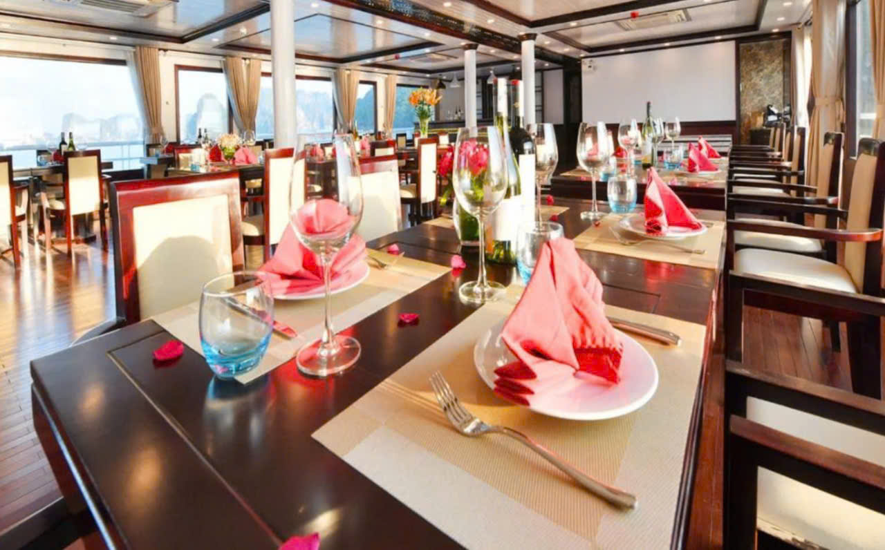 Aqua Elegance Cruise is a 5 star cruise on Ha Long Bay. Aqua Elegance Cruise promises to offer you a luxurious and unique vacation experience. With 12 elegantly designed cabins, every detail on the cruise is meticulously crafted to ensure maximum comfort for guests. Join us to explore the majestic beauty of Ha Long Bay and enjoy modern amenities and attentive service on the Aqua Elegance Cruise Cruise.