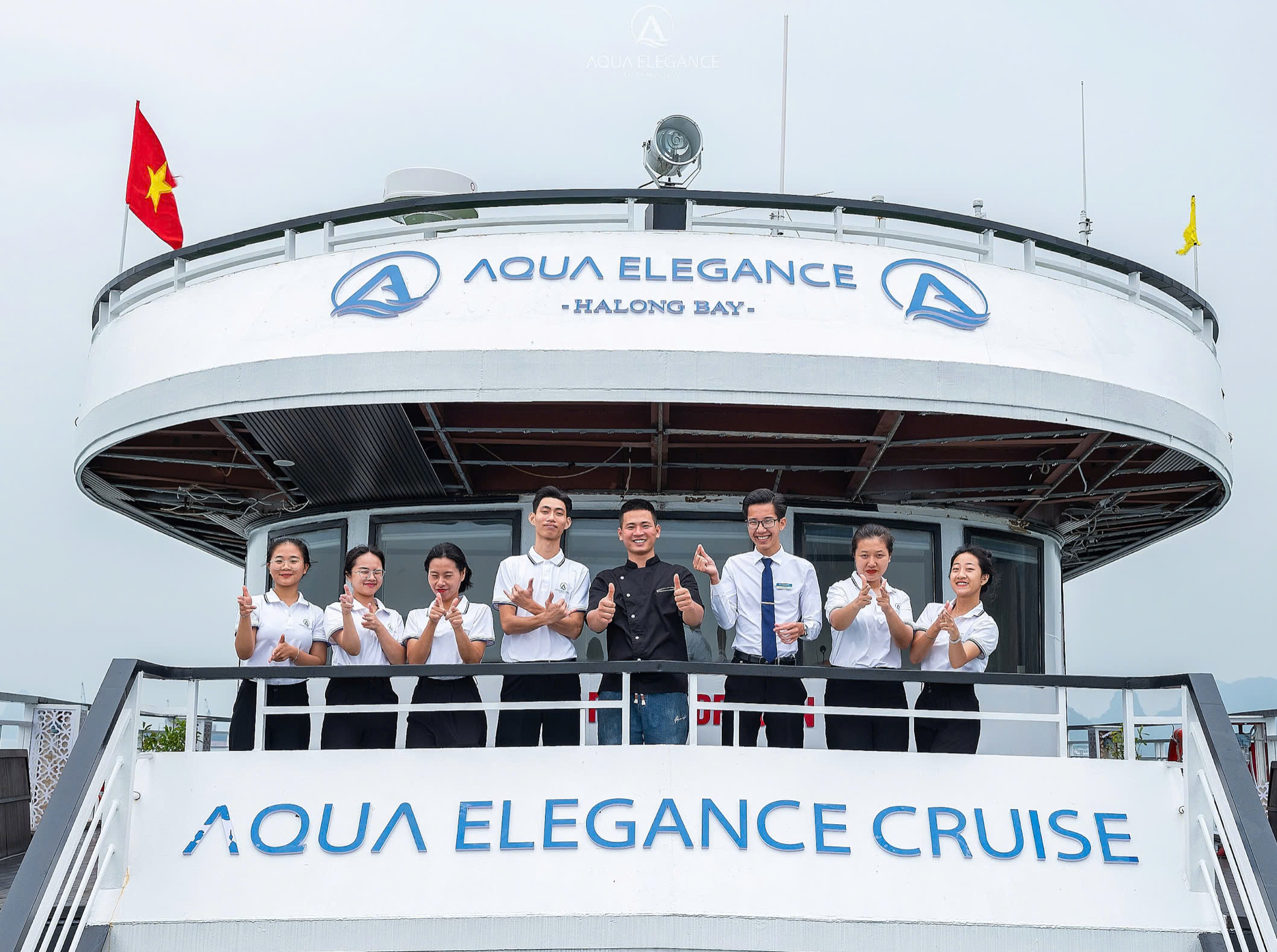 The 5-star Halong Aqua Elegance Cruise is designed in a modern style but still retains the traditional features of Vietnamese culture. With a team of professional, enthusiastic and friendly staff, the cruise is committed to bringing visitors a classy experience when exploring Halong Bay.