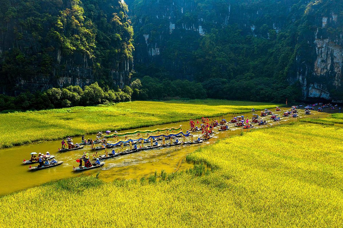 The best time to visit Tam Coc Bich Dong is from May to June when the golden rice fields blend with the green mountains, creating a beautiful natural picture.