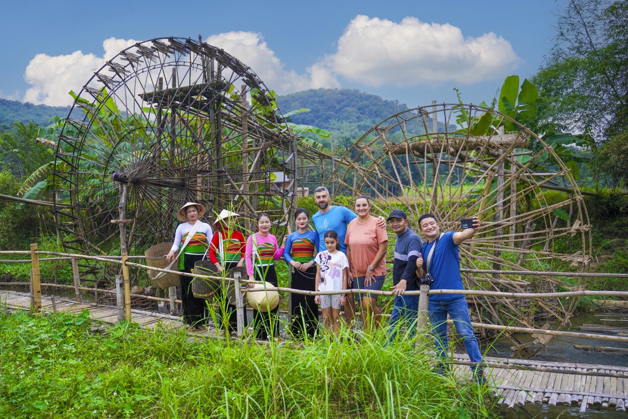 Continue to Cham Stream tourist area to see the giant water wheels and participate in exciting kayaking or bamboo rafting on the river.