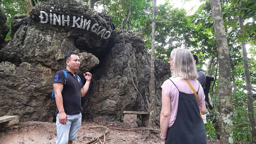 After overcoming the challenging path, tourists will be rewarded with a majestic view from Ngu Lam Peak. From a height of 150m above sea level, tourists can admire the panoramic view of Kim Giao Forest and the surrounding areas, creating a sense of tranquility and peace.