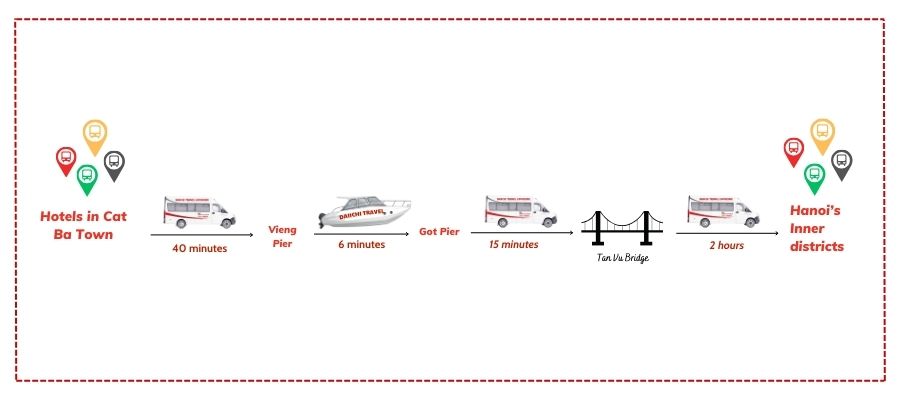 Here's the itinerary for the Cat Ba to Hanoi journey