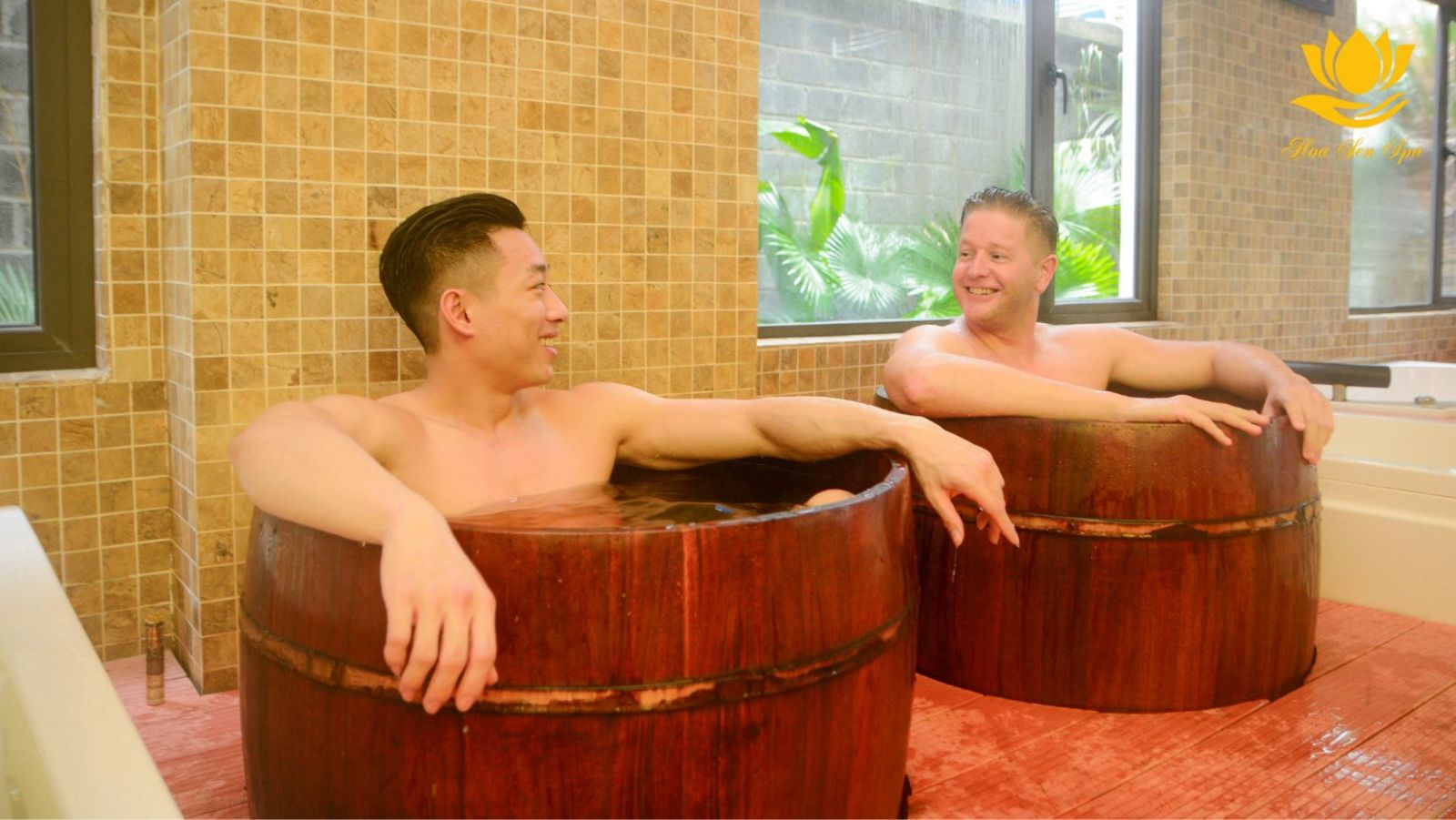 Herbal baths are a special experience in Nam Dam. The herbal leaves are picked from the forest, and processed into bath water, helping to relieve illnesses and bring a comfortable, relaxing feeling to tourists.